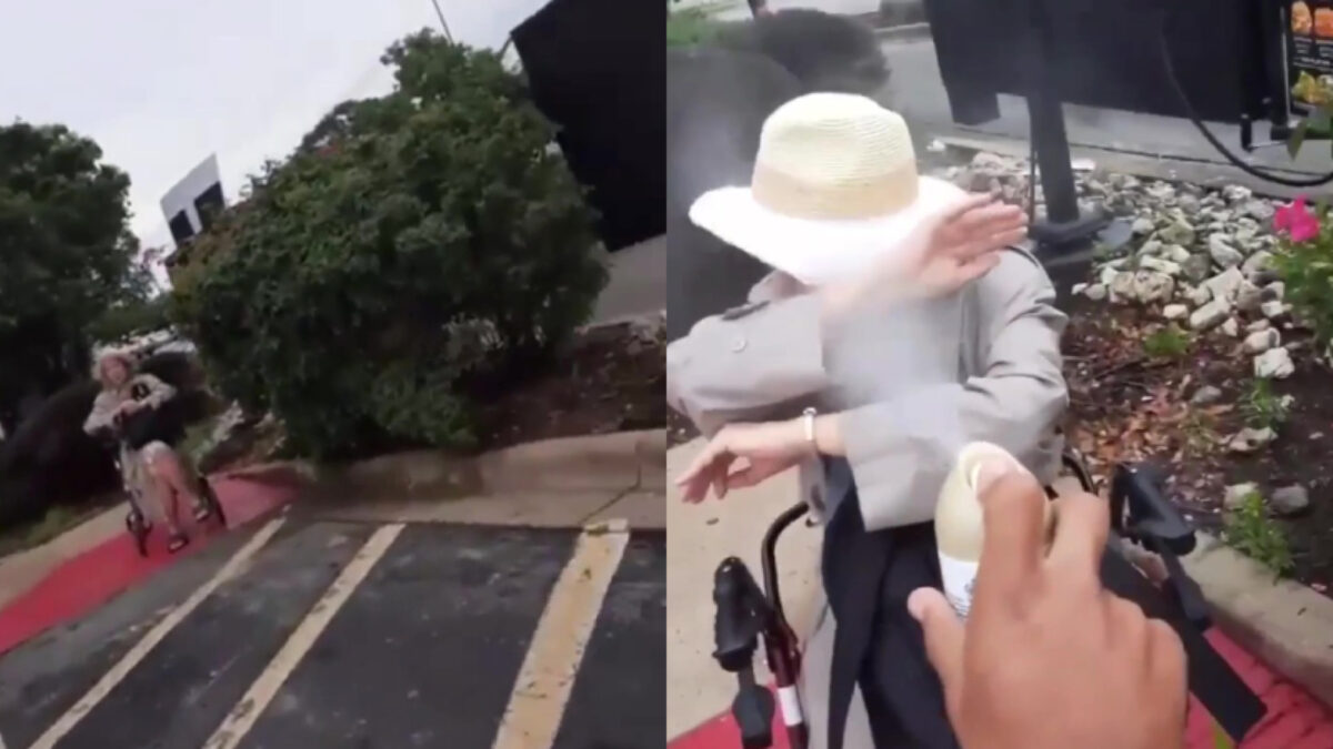 Racistische rolstoeldame krijgt een gratis desinfectiebehandeling