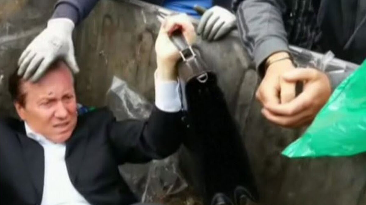 De beelden zijn inmiddels al 5 jaar oud, maar tonen toch weer even aan hoe men in Oekraïne met politici omgaat. Dit is namelijk Vitaly Zhuravsky en hij wilde strengere restricties aan protesten en demonstraties. Daar was een boze menigte het niet mee eens, dus hop, in de container met de man!