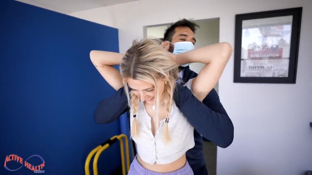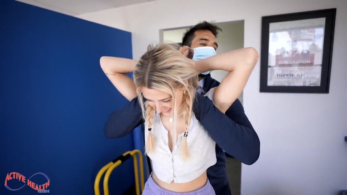 Gelukkige chiropractor mag streamer Corinna Kopf onder handen nemen