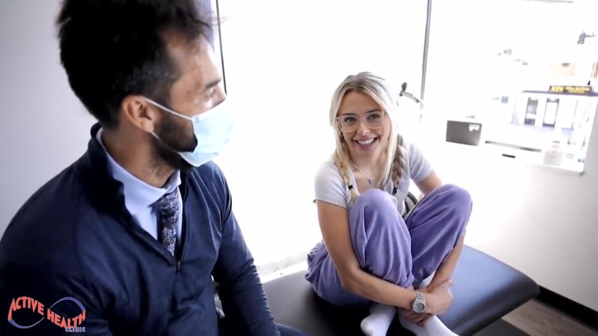 Gelukkige chiropractor mag streamer Corinna Kopf onder handen nemen