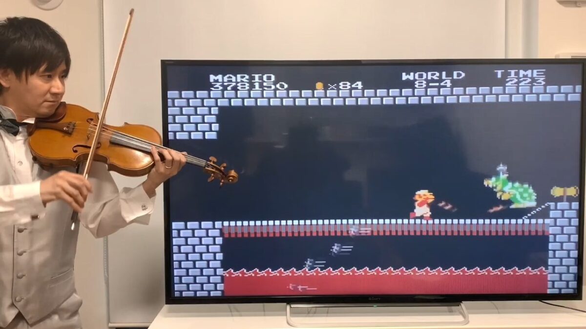 Violist speelt alle muziek en geluidseffecten tijdens een potje Super Mario