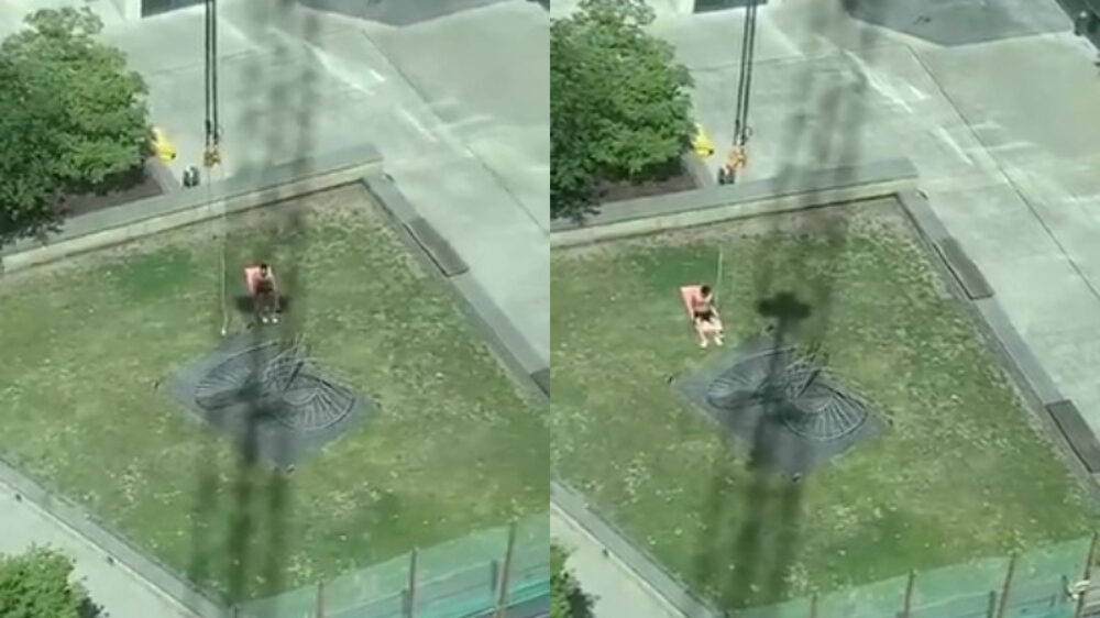 Je moet jezelf op een warme, zonnige dag toch zien te vermaken, en dat doet deze kraanmachinist door een zonaanbidder te trollen. Altijd leuk, iemand in de schaduw zetten!