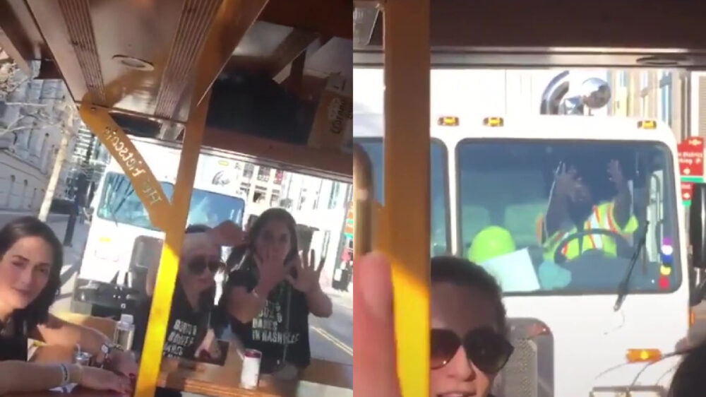 Pakketbezorger besluit ook even gezellig met de bierfiets mee te doen