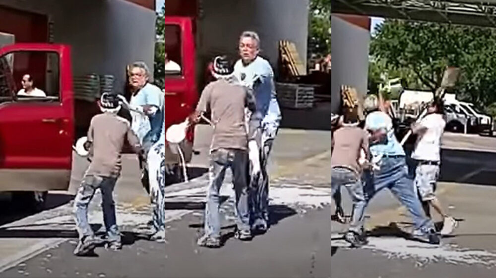 Vier Amerikaanse doe-het-zelvers, gewapend met emmers verf, gaan met elkaar op de vuist bij een Home Depot in Florida en dit zorgt voor een behoorlijk witte bende.