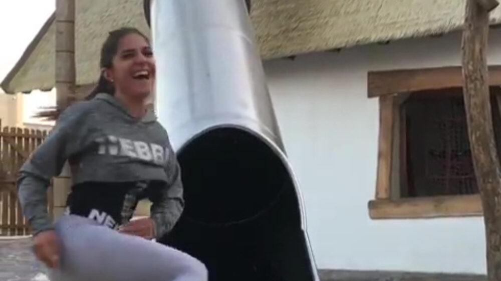 Deze dame gaat even ondeugend van de glijbaan Virals