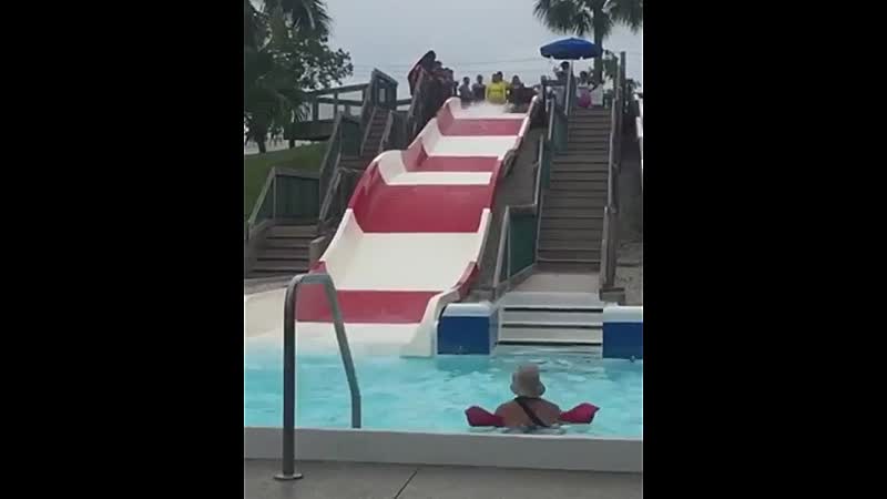 Big Mama heeft een wild ritje op de waterglijbaan Fails