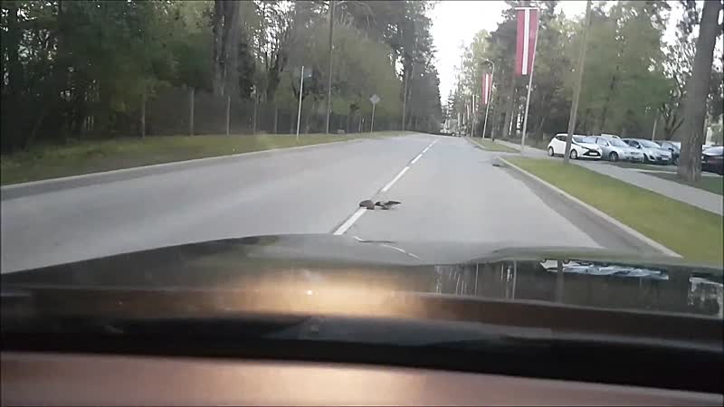 Kraai helpt zijn egelmattie om veilig de weg over te steken