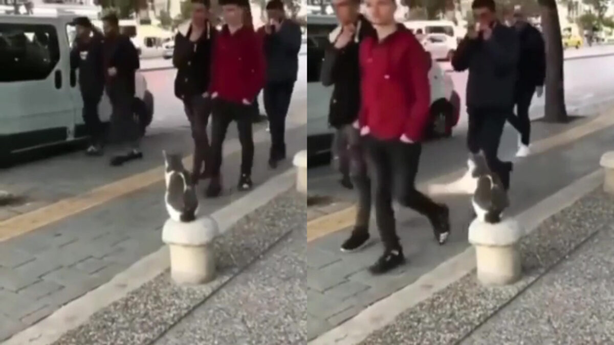 "Zo, fok jullie allemaal, ik ga hier gewoon even relaxed zitten en iedereen die voorbijkomt haal ik open." Gezellig hoor, die poezebeestjes!