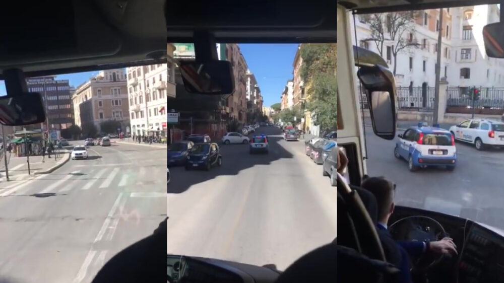 Iers rugbyteam krijgt een politie-escorte dwars door rome