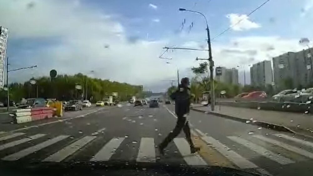 De close call award van deze week gaat naar deze Russische geluksvogel die net niet overhoop wordt gereden. Hij weet zijn jongeheer net op tijd terug te trekken!