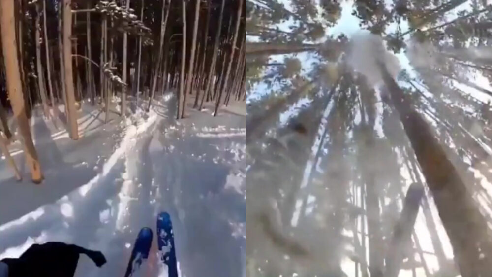 Skiër maakt in volle vaart hardhandig kennis met een boom