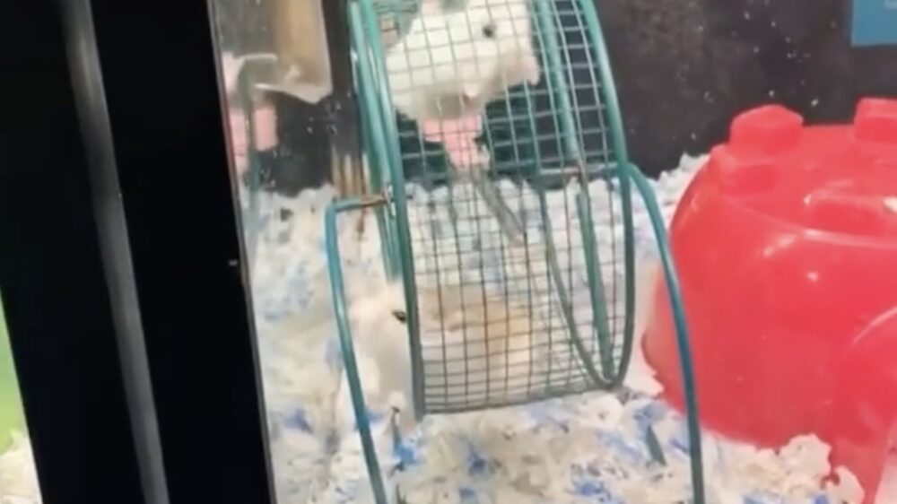 Terrorhamster geeft z'n maatje een gratis ritje minirad
