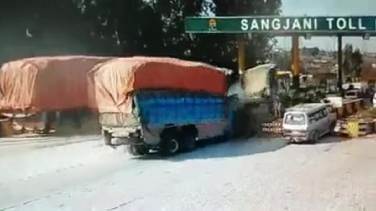 Haastige vrachtwagenchauffeur ramt zich een weg door een tolpoortje