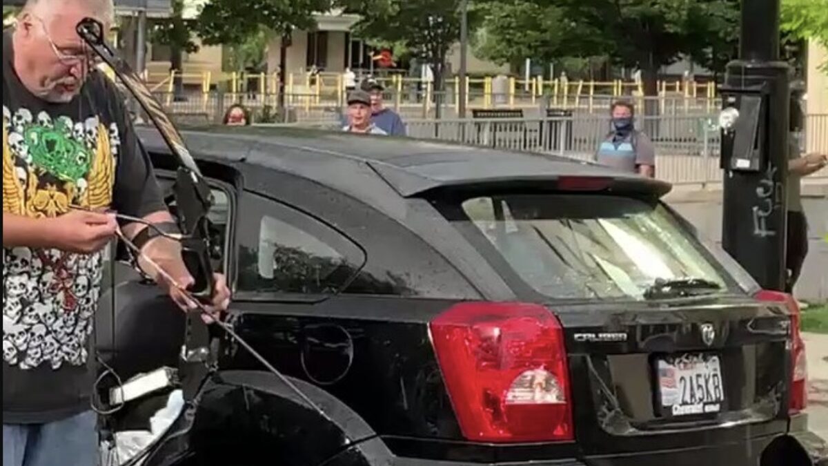 Chaos in Salt Lake City: man bedreigt demonstranten met boog en kapmes