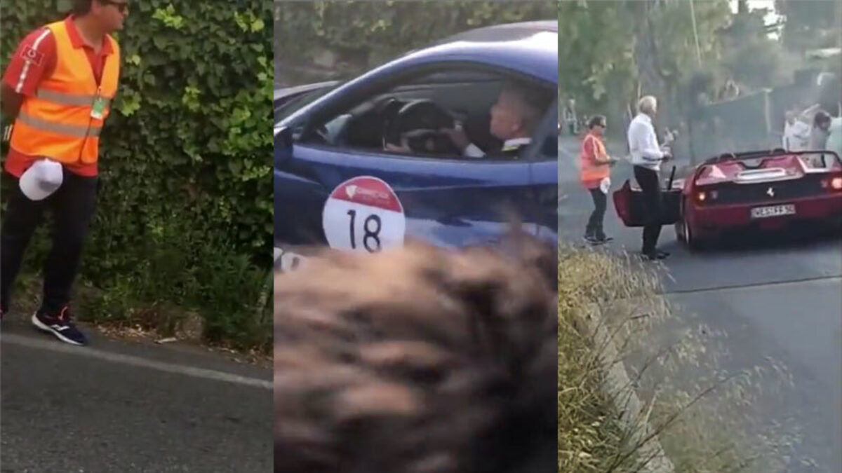 Man in Ferrari maakt even een sympathieke pitstop voor de fans Fails