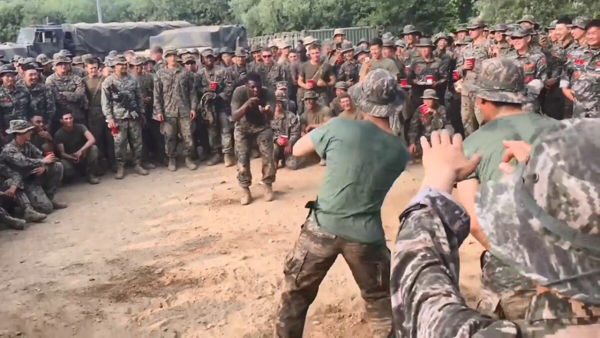 Amerikaanse mariniers houden een dance off met Zuid-Koreaanse mariniers
