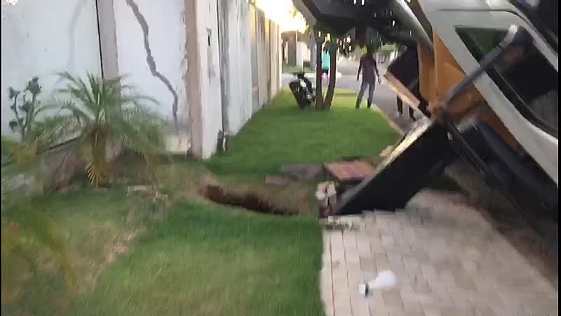 Zul je net zien; wordt na jaren van sparen eindelijk je nieuwe zwembad afgeleverd, blijkt dat de kraan zijn nét op die plek van de stoep heeft geparkeerd waar een sinkhole verstopt zat.