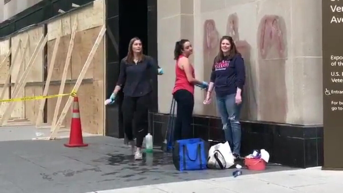 Veruit de meeste mensen zijn echt wel solidair met de (zich fatsoenlijk gedragende en vreedzaam protesterende) zwarte medemens, maar er zijn altijd SJW's die er een schepje bovenop doen. Deze dame vindt namelijk dat als je gebouw is ondergekalkt je dit moet laten staan, anders haat je zwarte mensen en heb je white privilege en ben je waarschijnlijk een Trump-aanhangende neonazi.