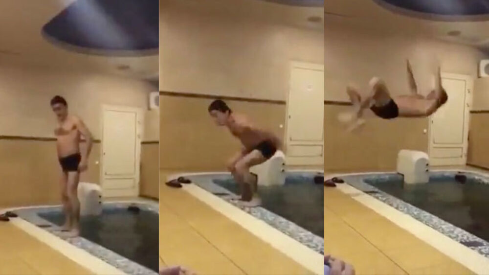 Ook op latere leeftijd kun je nog prima het zwembad in backflippen Fails