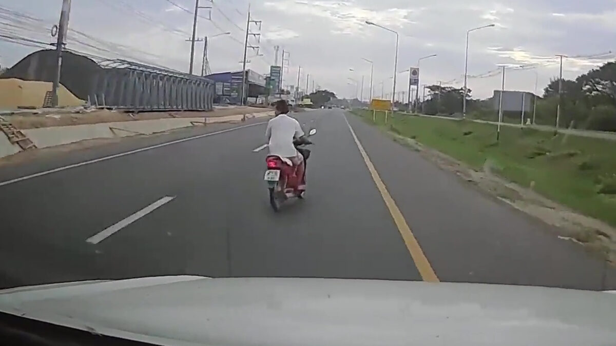 Thaise motorrijder vergeet even achter zich te kijken voordat hij van baan wisselt