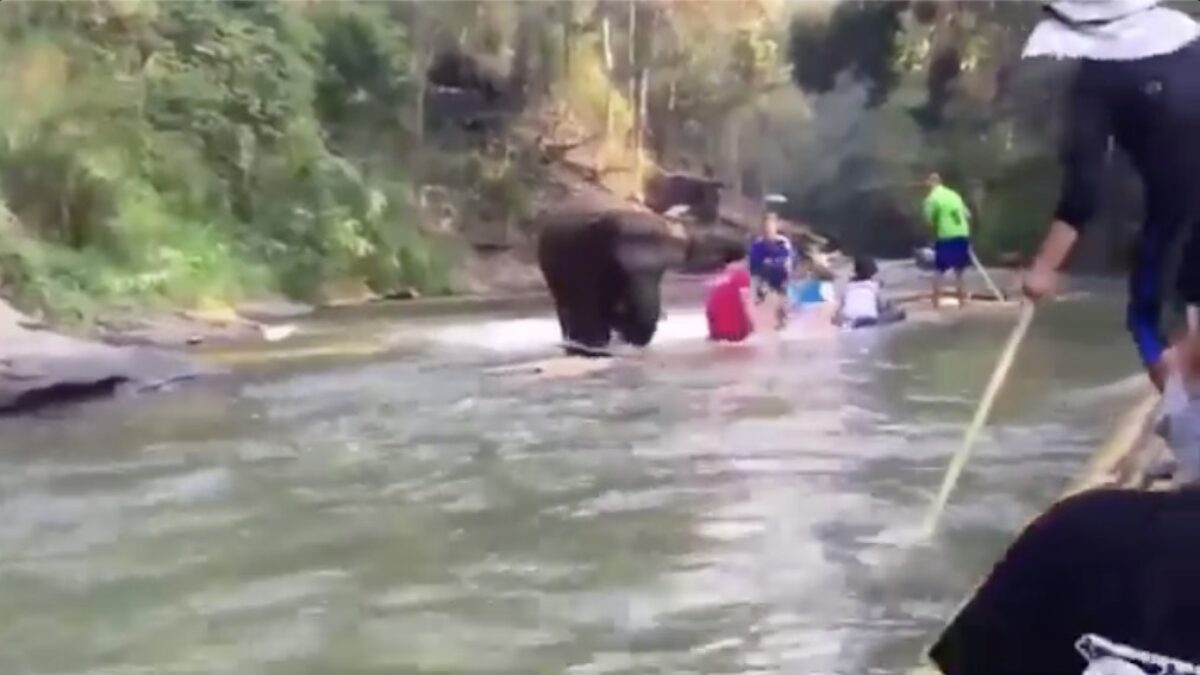 Toeristen genieten van een potje zwemmen met olifanten in Thailand