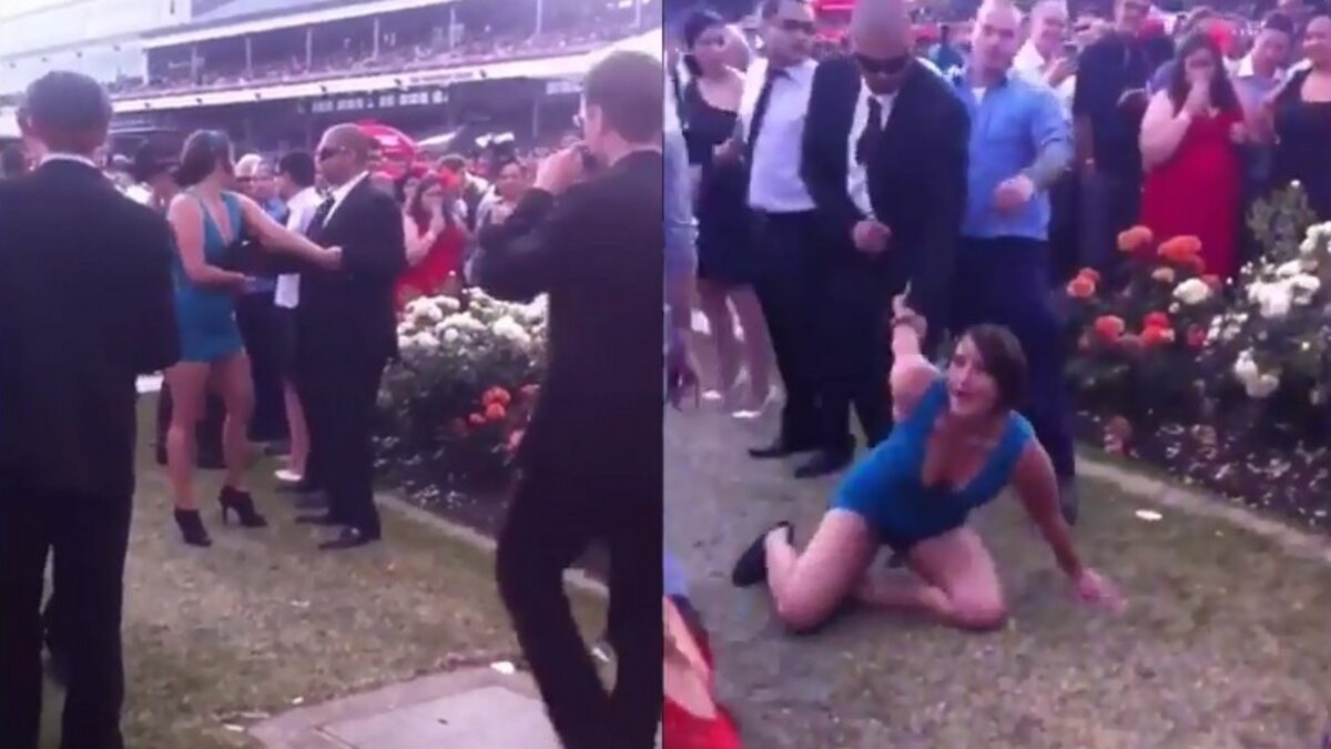 Strontbezopen Australische Truus hakt in op random mensen Knokken