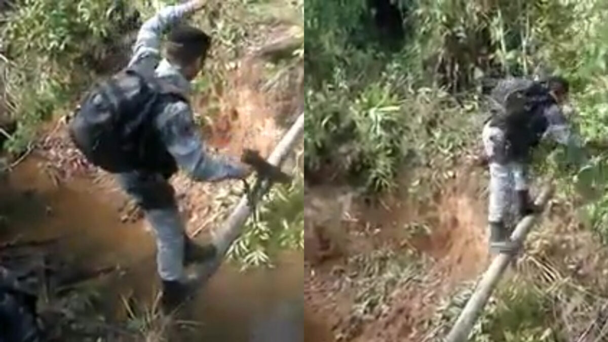 We weten niet direct of het een vereiste is, maar het lijkt ons toch best handig om over goed evenwicht te beschikken als je het leger in gaat. Deze soldaat demonstreert even het belang daarvan.
