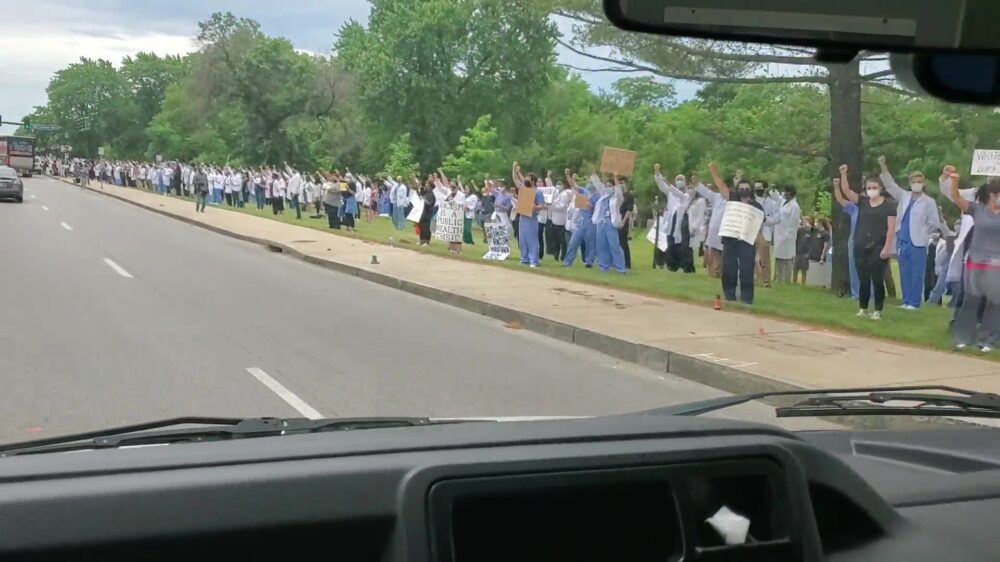 Nog niet zo heel lang geleden lieten mensen van over de hele wereld hun steun aan het ziekenhuispersoneel tijdens het hoogtepunt van de coronacrisis zien, nu is het andersom. Het personeel van Barnes Hospital in St. Louis ging namelijk de straat op om hun steun te betuigen aan Black Lives Matter.