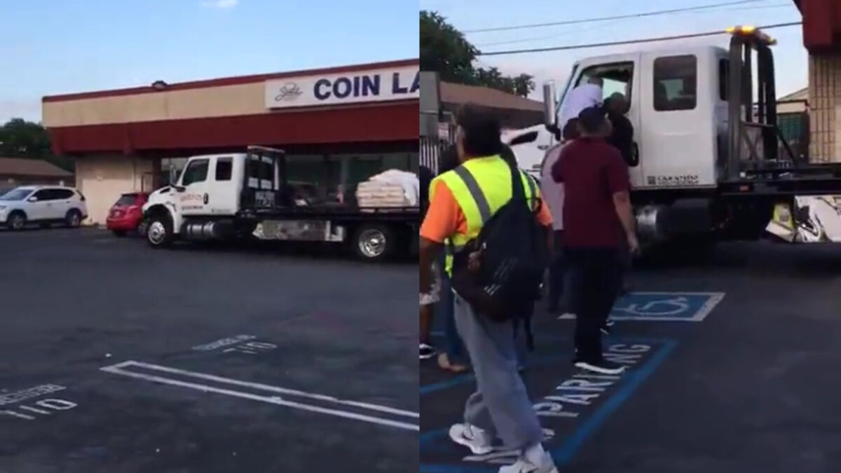 Met een borrel op in je auto gaan zitten is al verschrikkelijk kansloos, maar bezopen in een joekel van een sleepwagen stappen is al helemaal voor eencelligen. Deze knakker veroorzaakte dan ook een stevige chaos op een parkeerplaats in Californië.