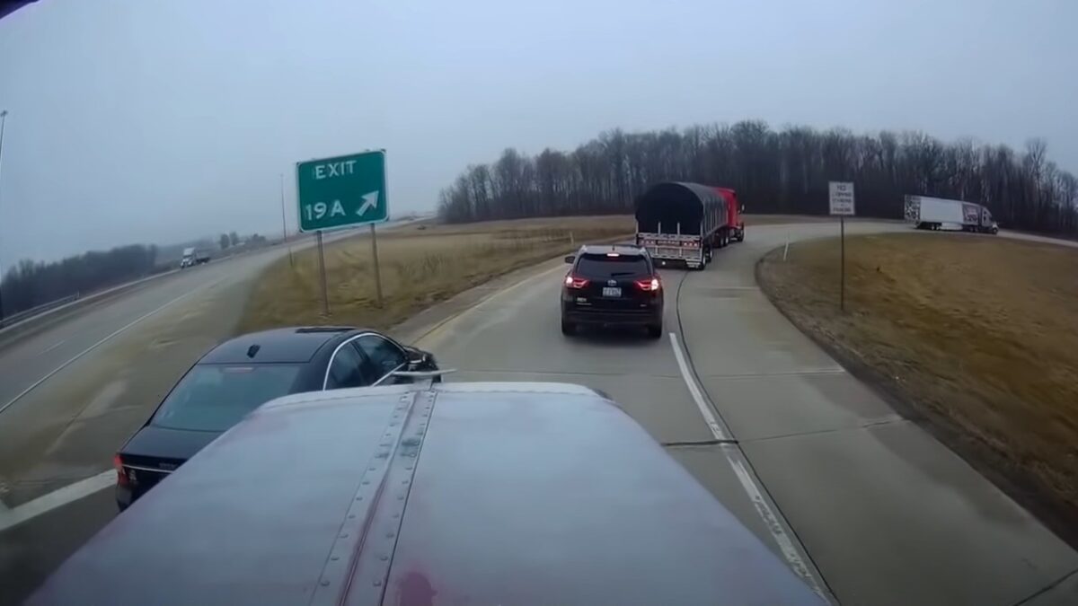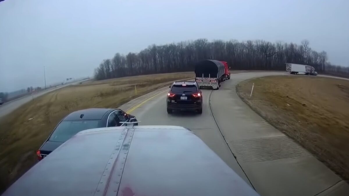 Vrachtwagenchauffeur toetert afsnijdende automobilist helemaal de moeder