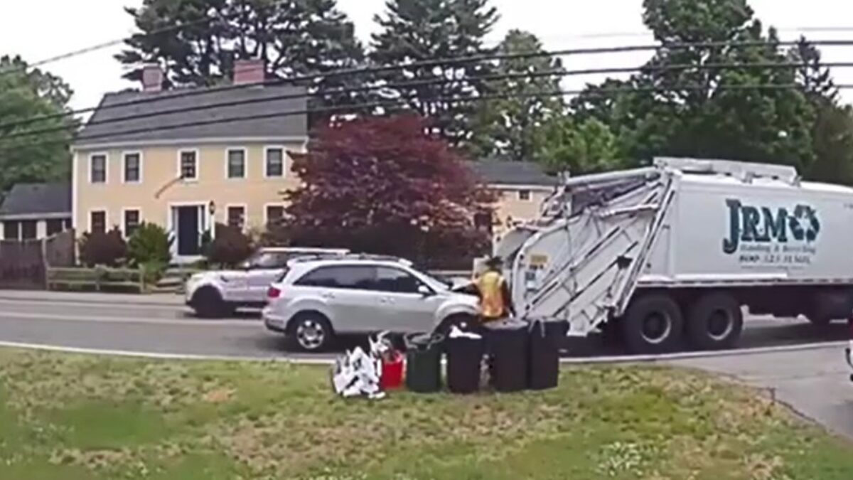 Automobilist zet zijn wagen bij het oud vuil