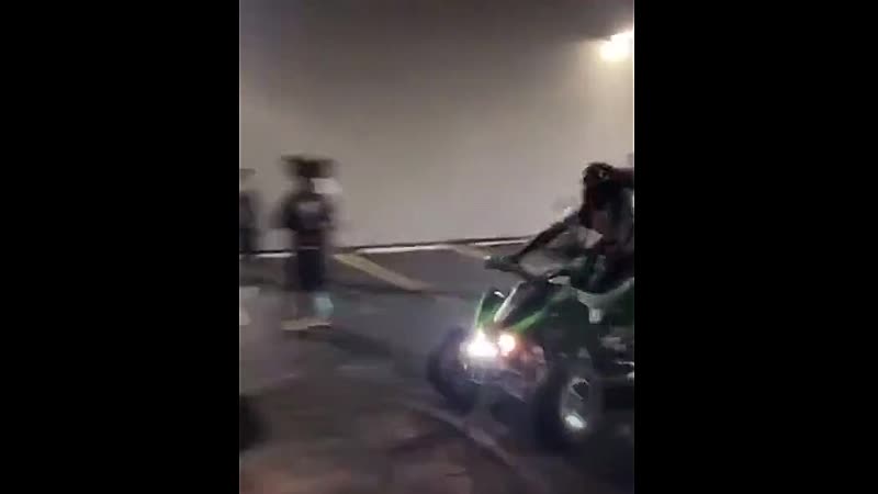 Amateurstuntman op quad maakt wheelie en schept omstander