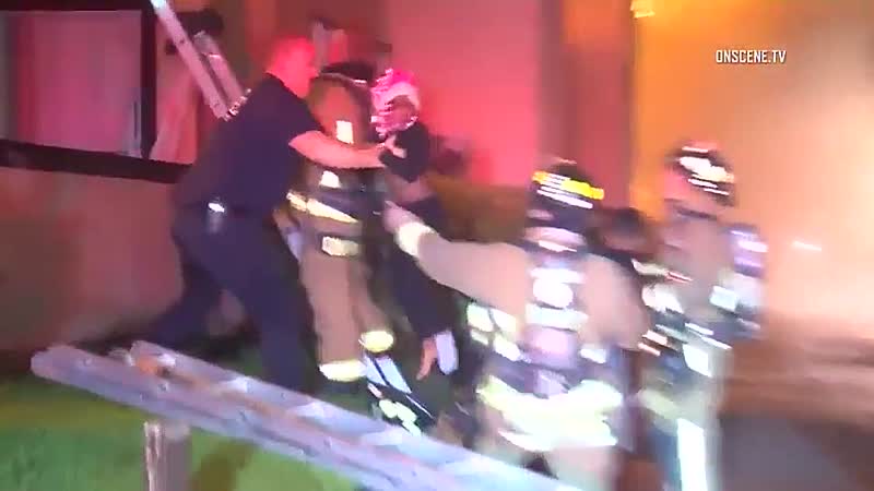 Amerikaanse brandweer gooit koters in brandende woning Fun