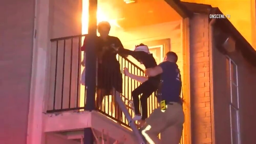 Amerikaanse brandweer gooit koters in brandende woning