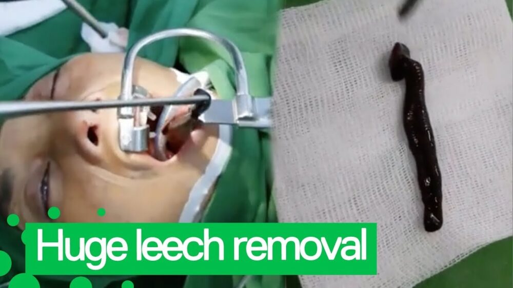 Doktoren trekken enorme bloedzuiger bij een vrouw uit de keel Bizar