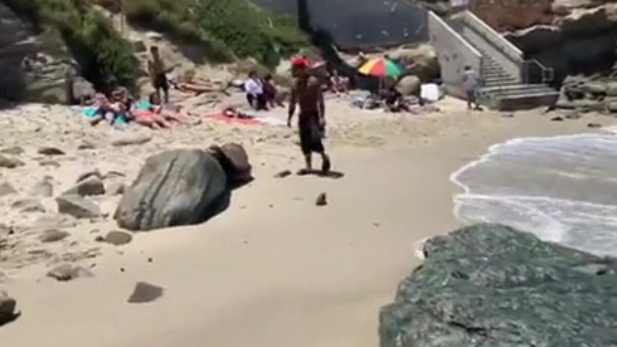 Heb jij weer. Denk je rustig een stukje over het strand te wandelen, besef je je ineens dat die grote homp helemaal geen rots is.