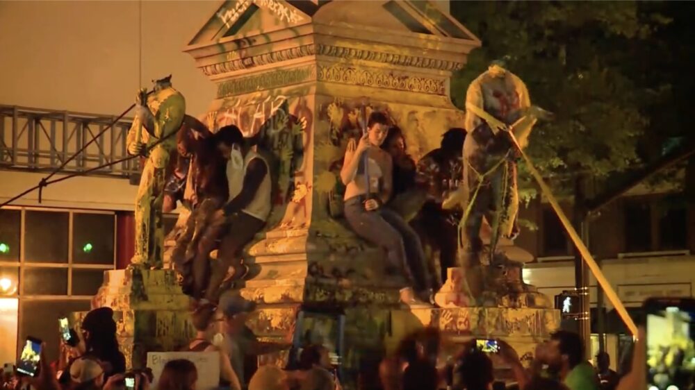 BLM-demonstrant belandt in ziekenhuis na neerhalen van standbeeld in Virginia