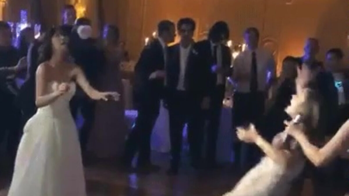 Tante Betsy probeert na 3 gauwe lauwe wijntjes het bruidsboeket te vangen Fails