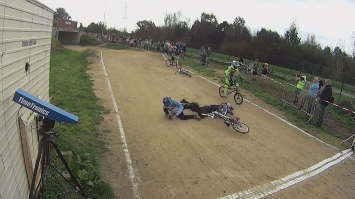 Elias Verbinnen gaat net voor de finish hard onderuit vanaf de eerste plek Fails