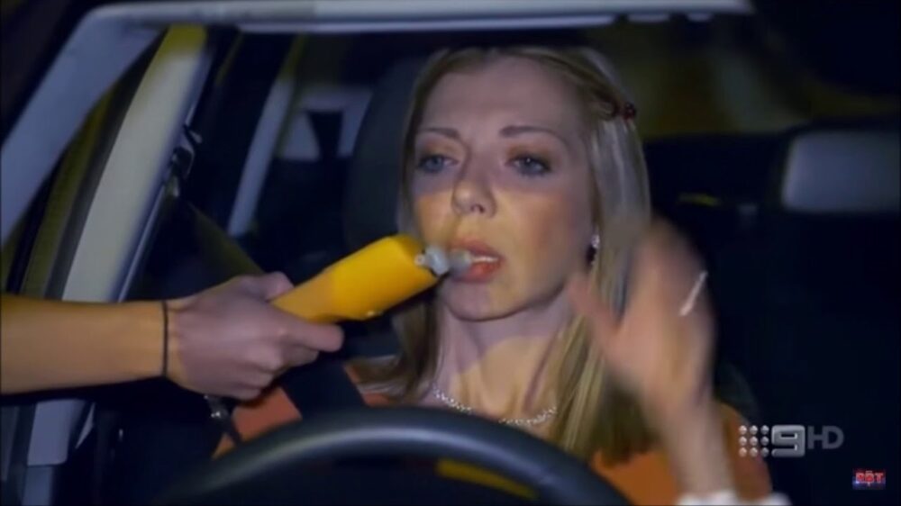 Blondje heeft geen enkel idee hoe ze moet uitblazen tijdens blaastest