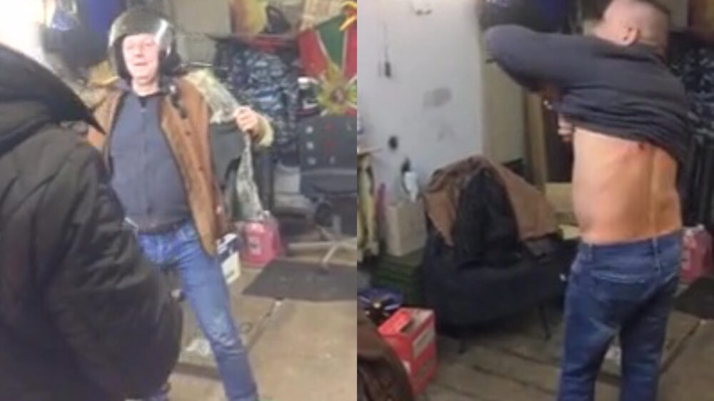 Russische randdebiel test een kogelvrij vest en laat zich beschieten