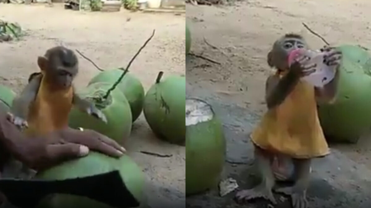 Deze kleine haarbal wil gewoon heel graag een beetje kokoswater