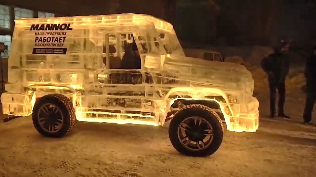 Russische automonteurs hebben een blyatmobiel gemaakt die uit ijs bestaat