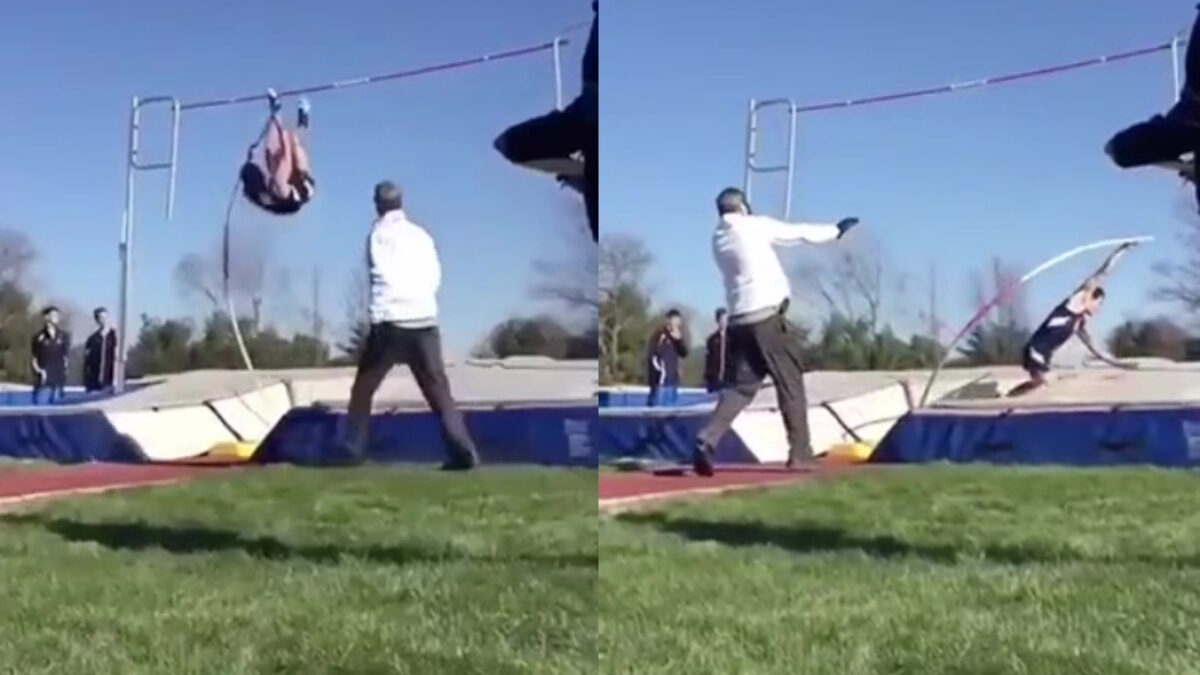 Polsstokhoogspringen is al een best stoere sport, maar gecombineerd met speerwerpen wordt dit alleen nog maar interessanter. Op de volgende Olympische spelen wat ons betreft!