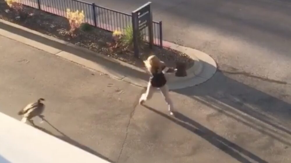 Handtasje krijgt het aan de stok met een agressieve gans Dieren