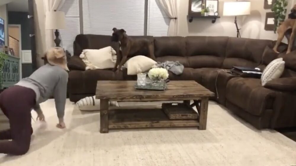 Valse tante bezorgt haar twee boxers even een trauma voor het leven