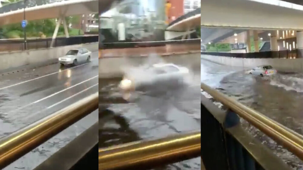 Ondertussen in Helmond: heldhaftige automobilist vs ondergelopen tunnel