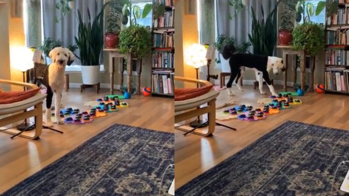 Nu zijn er genoeg mensen die tegen hun hond praten, maar dat beest zegt eigenlijk nooit iets terug. Daar had deze dame genoeg van, en zij bouwde een hele batterij knoppen met uitspraken waarop de hond zelf kan drukken. Het beest lijkt het zelfs daadwerkelijk te begrijpen!