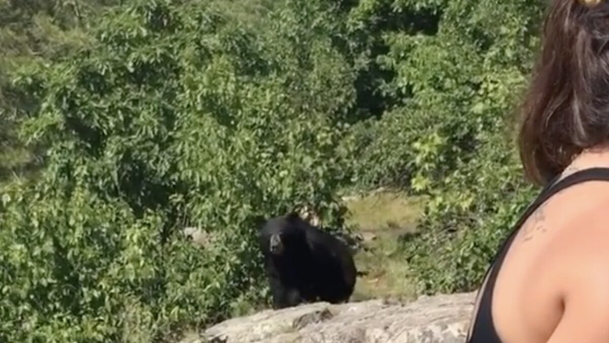 Stelletje krijgt tijdens wandeling bezoek van een bruine beer
