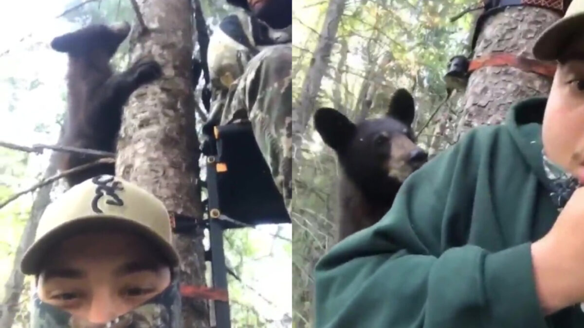 In een boom gaan zitten en de natuur bewonderen is natuurlijk een prima dagbesteding. Lekker rustig genieten van alle wonderen der aarde, inclusief de dieren die daar rondlopen. Je zou zeggen dat een boom genoeg bescherming is tegen indringers, maar deze mannen leren al vrij snel dat beren best goed kunnen klimmen.
